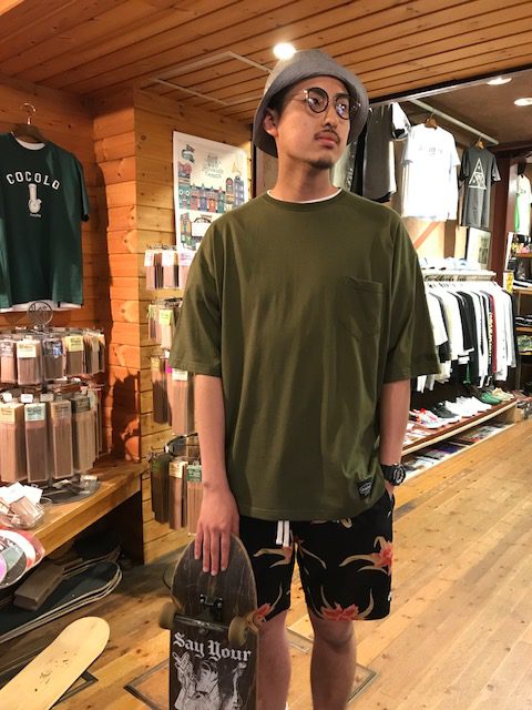 ビックシルエットなOHTGのTシャツに花柄のショーツを使用したシンプルなスタイリング。