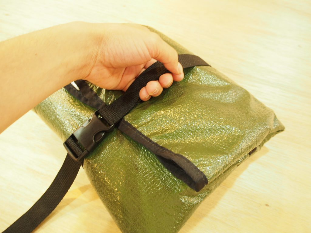外部のラチェットとストラップは持ち運びに便利なハンドルをつくったりくくりつけたり。