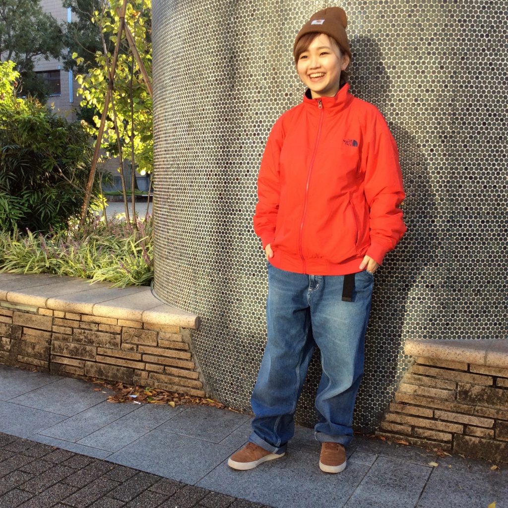 インパクト大のノースフェイスレッドをバッチリ着こなしてくれました。