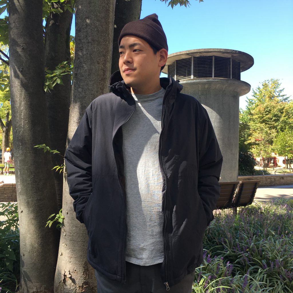 卓也にはフードタイプのジャケットを着てもらいました。