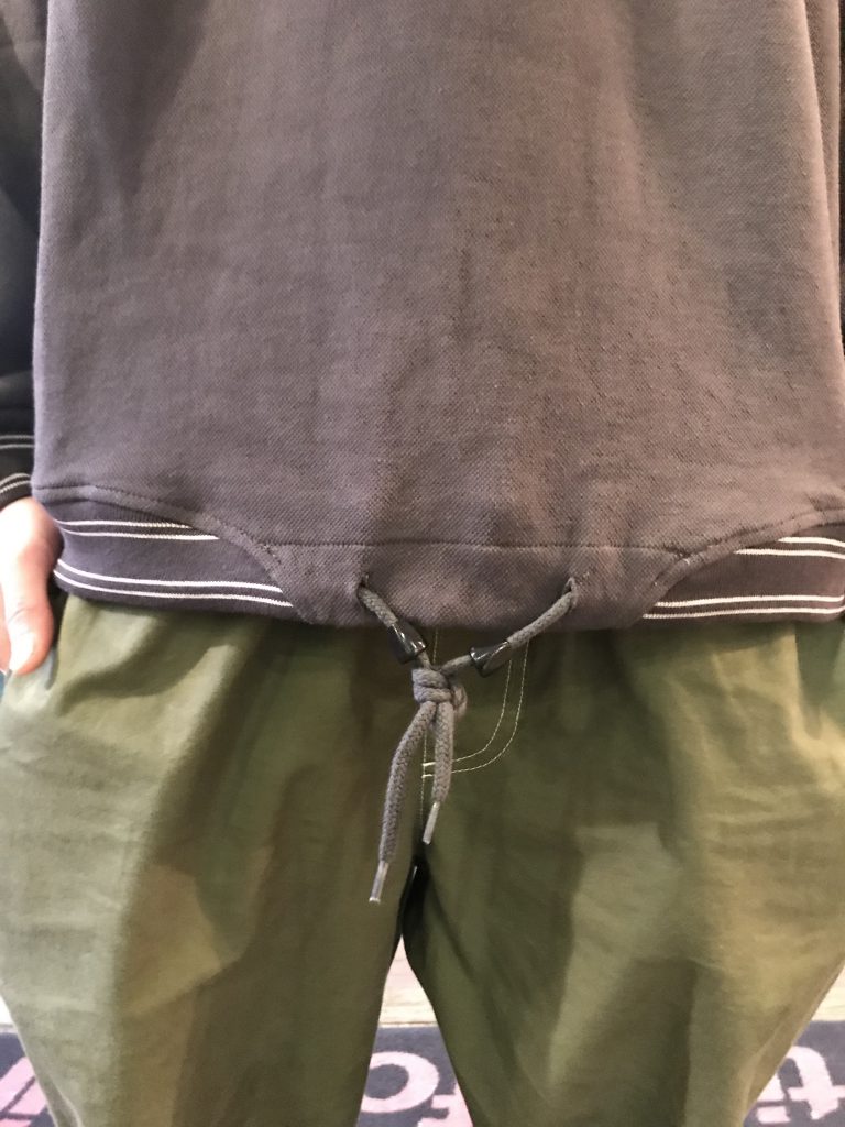 100%コットンのプルオーバースウェットはウエスト部分にドローリングを通し、襟、袖、裾のリブデザインによりオールド感をプラス。