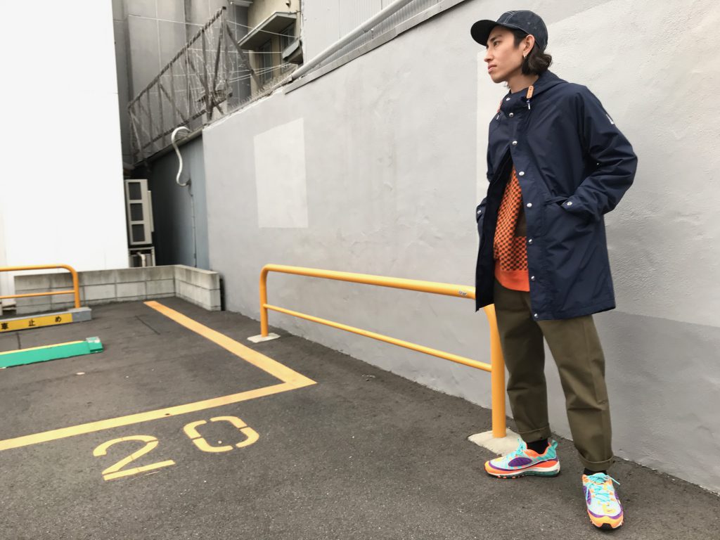 B-BOYっぽくスニーカーなどと組み合わせても良し、