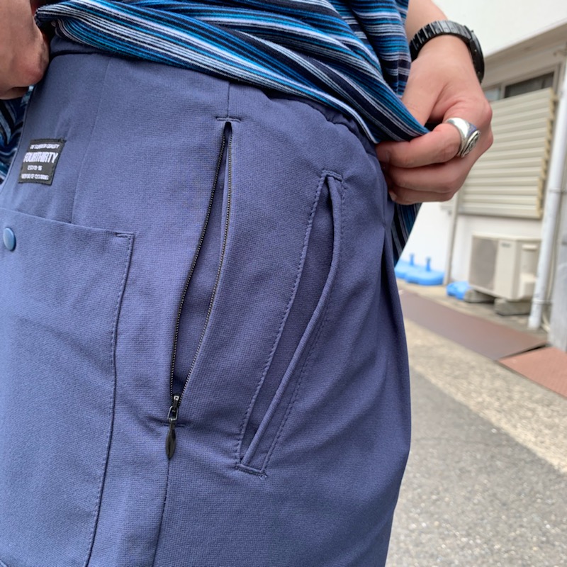 ポリ素材でなおかつストレッチ素材を使用したワイドショートパンツ。