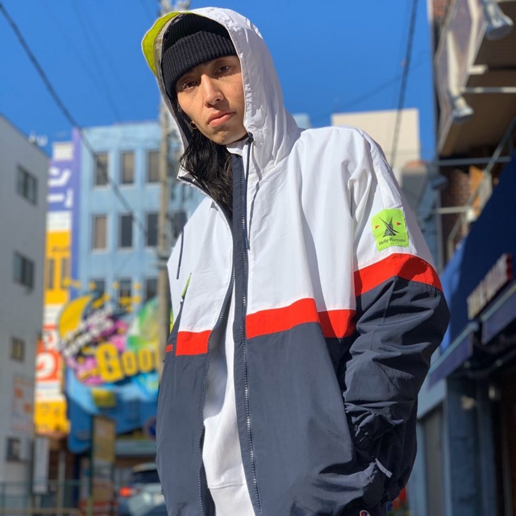 先日名古屋でもLIVEを行ったジャマイカンハーフの「Daichi Yamamoto」君がモデルで着用してます!