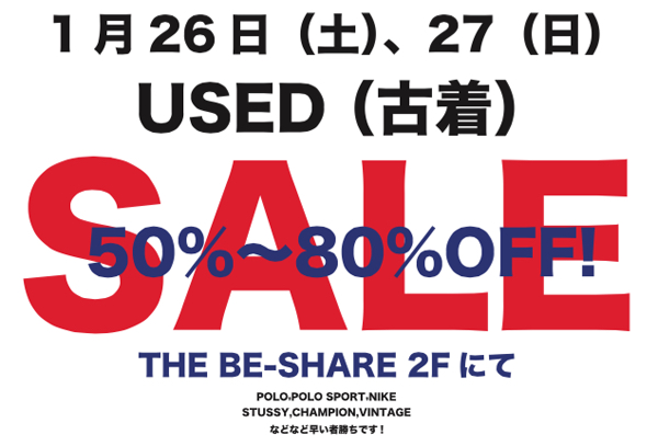 THE BE-SHARE 2Fにて USED(古着)のSALEをやります!